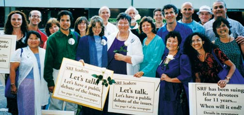 Ananda members protest peacefully at the SRF Convocation.